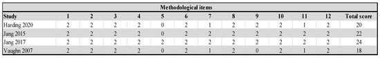 Study quality was assessed by two investigators independently. To evaluate randomized studies, the Cochrane Risk of Bias Tool [28] was used, which assesses bias in seven sources. High, low, or unclear risk was determined for each study. MINORS was used for the quality of non-randomized studies [29]. MINORS includes 12 items. A score ≥14 was used to include non-randomized studies.