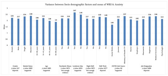 4.1.4. Socio-Demographic Factors (SCFs) vs. WRS and Anxiety