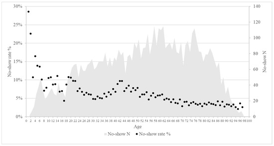 3.2. Patient Characteristics and No-Show Percentages