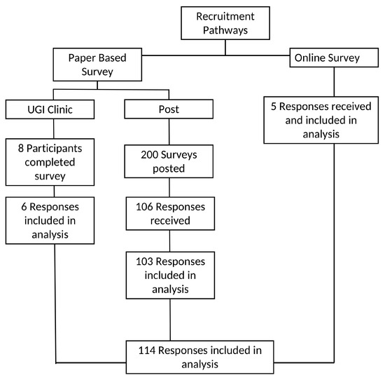 Overall, one hundred and fourteen (114) survey responses from three recruitment pathways were included in the analysis.
