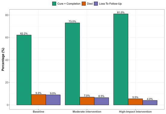 - Barteka, G.; Bwayo, D.; Matovu, J.K.; Wanume, B.; Alunyo, J.P.; Sseguya, R.; Masaba, J.P.; Obbo, J.S. Treatment outcomes and predictors of success for multidrug resistant tuberculosis MDR TB in Ugandan regional referral hospitals. Sci. Rep. 2025, 15, 14144. [Google Scholar] [CrossRef]