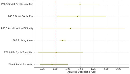 | Z60.xx: Social environment | 1.16 (1.11, 1.22) | 0.00 | 1.13 (1.08, 1.19) | 0.00 |