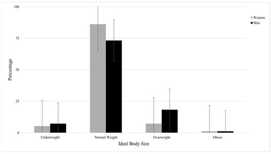 Distribution of participant selection of ideal body size by gender (women: n = 342; men: n = 82).
