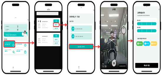 The exercise program was designed to accommodate older adults’ physical needs and promote safe, sustainable home-based engagement. The structure included three main phases (warm-up, main training, and cool-down), each with distinct physiological and psychological objectives. The full program was integrated into the Movement Poomasi application and delivered through interactive audiovisual guidance.