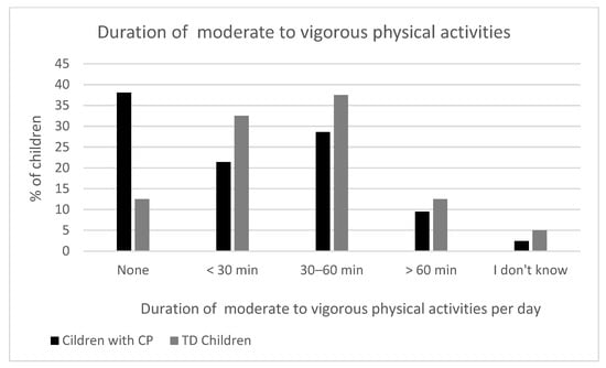 3.2. Days of Physical Activity of Children with Cerebral Palsy and Typically Developing Children