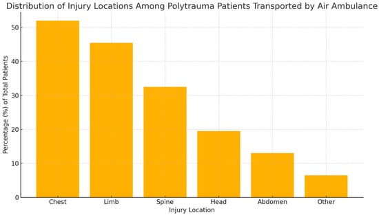 Figure 3. Distribution of injury locations among polytrauma patients transported by air ambulance.