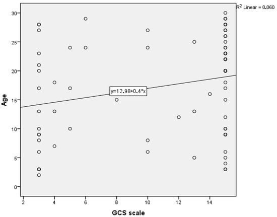 Figure 4. Correlation between Glasgow Coma Scale (GCS) and age.