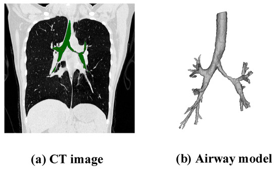 As shown in Figure 2, Figure 2a depicts the patient’s CT image, and Figure 2b shows a schematic diagram of the 3D model of the airway data.