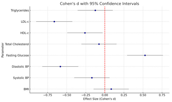 Forest plot of Cohen’s d effect sizes for cardiometabolic parameters.