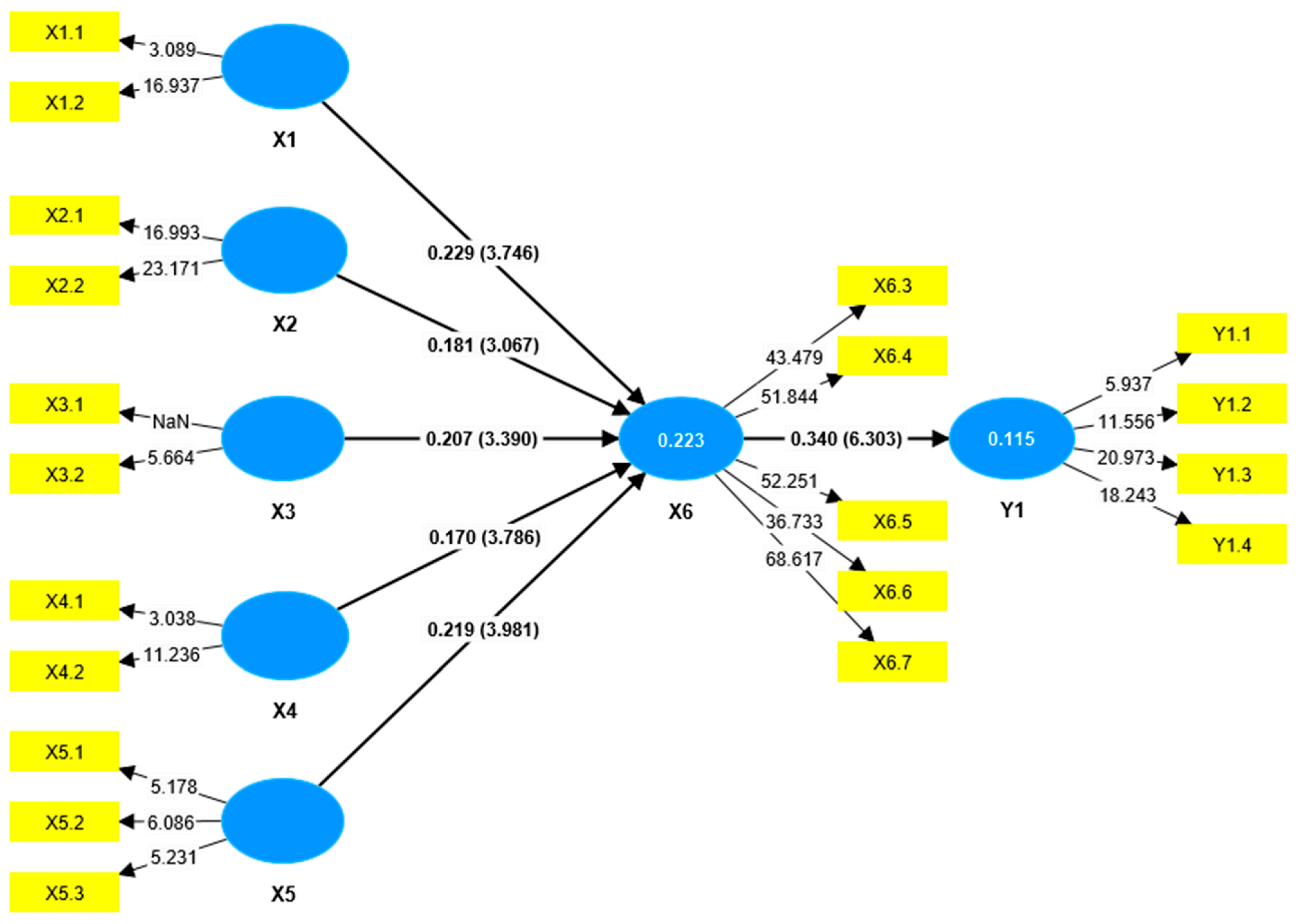 Table 2) indicate that all exogenous variables—Demographic Factors (X1), Educational Factors (X2), Technological Factors (X3), Economic Factors (X4), and Cultural Values (X5)—had a significant positive effect on Family Empowerment (X6), with T-statistics greater than 1.96 and
