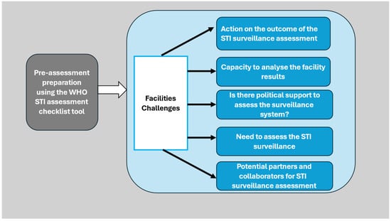 The pre-assessment of the STI surveillance generated five subthemes, which were grouped as a facility challenges theme, as shown below (Figure 1).