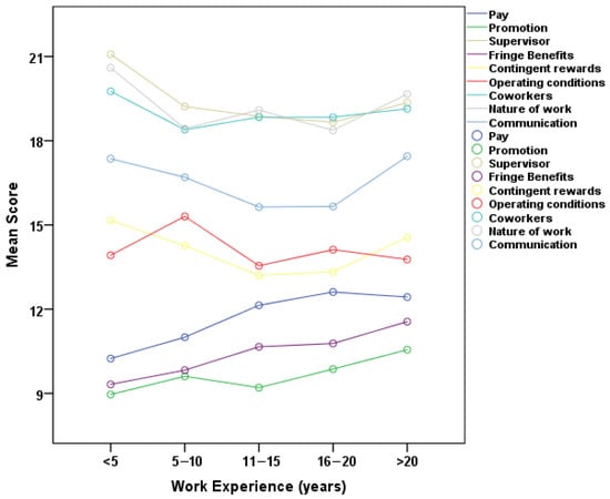 Association of JSS scales with work experience.