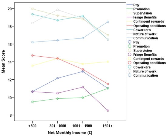 Accordingly, Figure 3 illustrates the relationship between net monthly income and the JSS subscales. A notable positive link was identified between net monthly income and the pay subscale, suggesting that increased income correlates with enhanced satisfaction with pay. A notable negative connection was identified between net monthly income and the operational procedures subscale, indicating that employees with more income tend to report marginally poorer satisfaction with the way the organization operates.