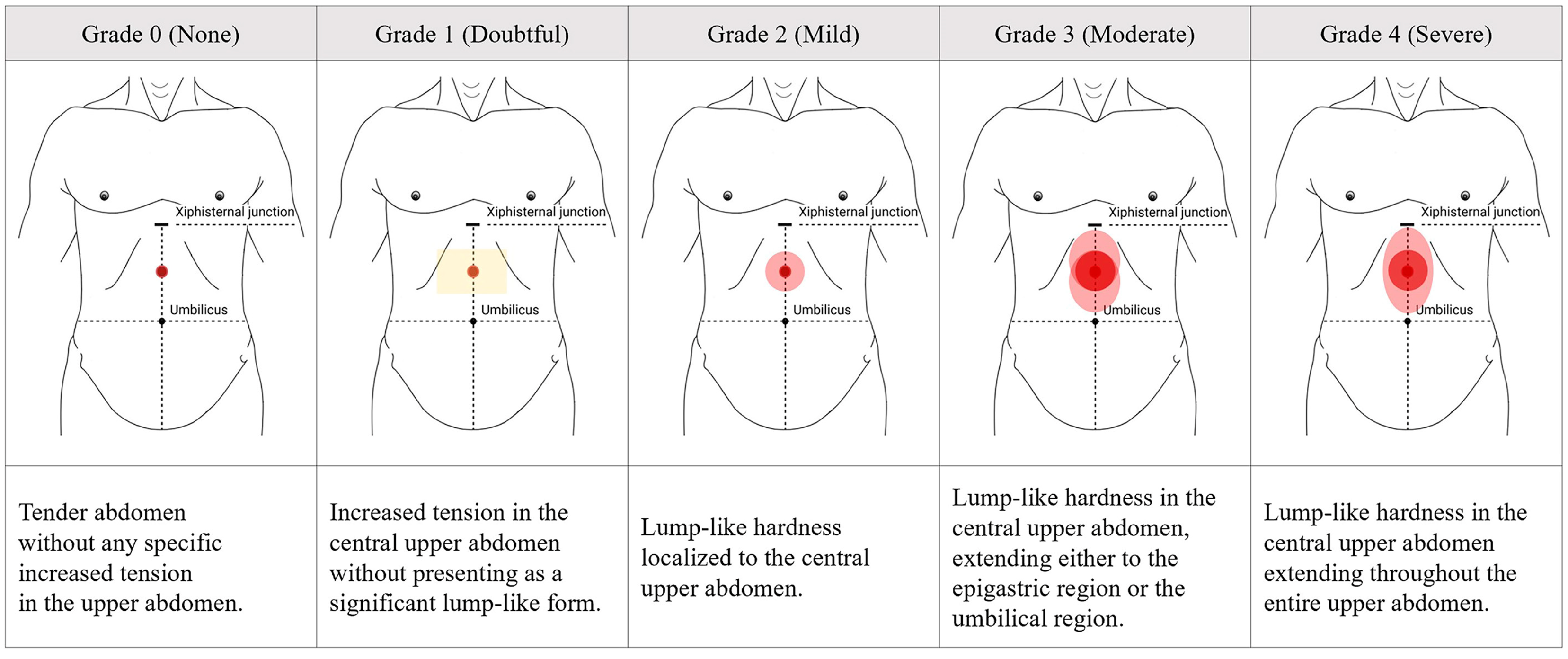 Epigastric fullness, n (%) | 14 (87.5) | 0 (0) | - |