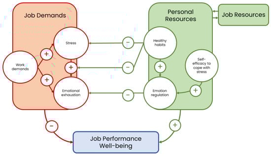 - Bakker, A.B.; Demerouti, E.; Sanz-Vergel, A. Job Demands-Resources Theory: Ten Years Later. Annu. Rev. Organ. Psychol. Organ. Behav. 2023, 10, 25–53. [Google Scholar] [CrossRef]