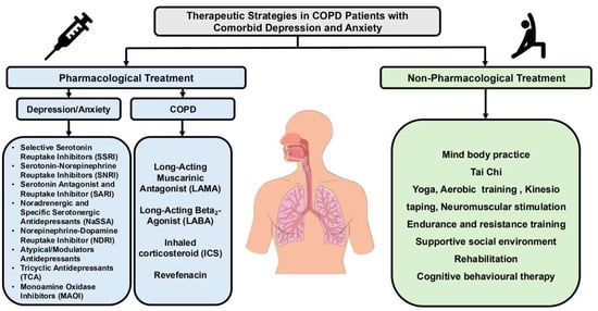 - Rahi, M.S.; Thilagar, B.; Balaji, S.; Prabhakaran, S.Y.; Mudgal, M.; Rajoo, S.; Yella, P.R.; Satija, P.; Zagorulko, A.; Gunasekaran, K. The Impact of Anxiety and Depression in Chronic Obstructive Pulmonary Disease. Adv. Respir. Med. 2023, 91, 123–134. [Google Scholar] [CrossRef]