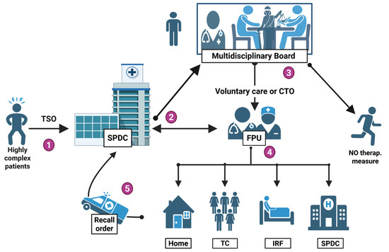 A further weakness in the Italian framework is the absence of scalable measures between compulsory hospitalization (SPDC) and full discharge. The current dichotomy, “all or nothing”, offers no statutory tool comparable to Compulsory Community Treatment, which elsewhere allows mandatory outpatient care (e.g., pharmacotherapy, psychotherapy, toxicology screening).