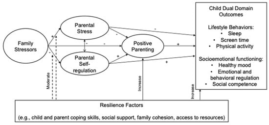 Unfortunately, however, most parenting support programs do not directly address parent/family stress or parental self-regulation, which may diminish the benefits of these programs for families affected by major stressors. Some preventive interventions show promise in targeting parenting among families facing adversity, with several demonstrating efficacy in improving child, parent, and/or family outcomes [24,25,26]. However, many parent-based preventive interventions are limited in (1) not directly addressing parents’ own stress and coping and (2) not jointly targeting both social–emotional and physical health outcomes in children. Filling these critical gaps might improve intervention engagement among families who typically face multiple barriers when accessing and completing parenting programs. A key goal is to enhance preventive intervention impact by integrating (a) parental self-regulation and stress reduction and (b) children’s lifestyle behavior health and social–emotional functioning in the context of positive parenting skills.