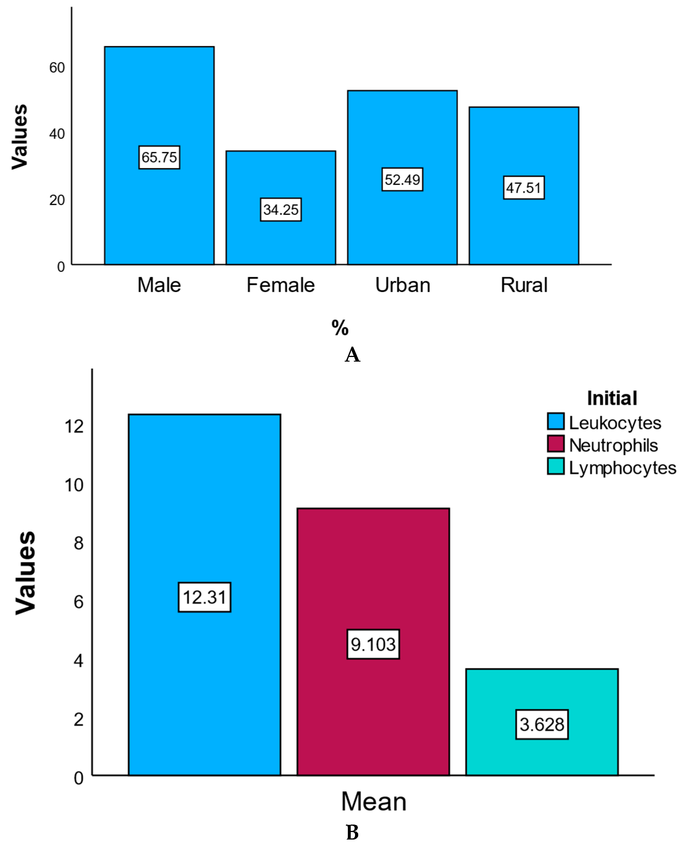 Neutrophils at admission (×103/µL, mean ± SD) | 9.7 ± 4.0 | 9.1 ± 3.8 | 0.16 |