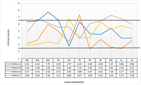 Figure 2 provides an overview of the Stanine values of the AVEM dimensions, and Table 4 shows significant differences between the age groups.