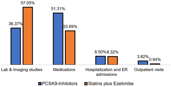Average percentages of each medical cost category among patients on PCSK9 inhibitors and statins plus ezetimibe.