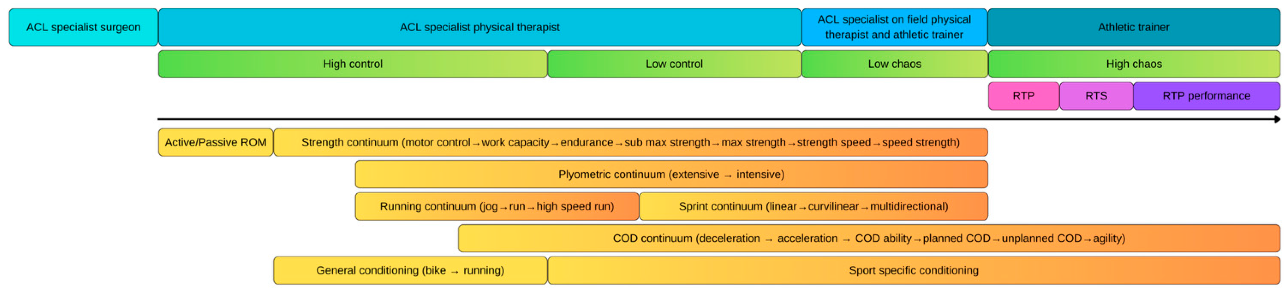 - Taberner, M.; Allen, T.; Cohen, D.D. Progressing Rehabilitation after Injury: Consider the “Control-Chaos Continuum”. Br. J. Sports Med. 2019, 53, 1132–1136. [Google Scholar] [CrossRef]