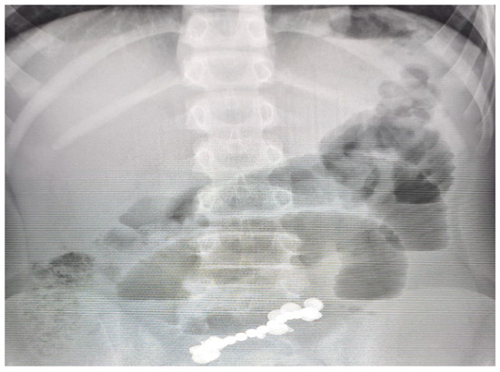 - Pogorelić, Z.; Borić, M.; Markić, J.; Jukić, M.; Grandić, L. A Case of 2-Year-Old Child with Entero-Enteric Fistula Following Ingestion of 25 Magnets. Acta Med. 2016, 59, 140–142. [Google Scholar] [CrossRef]