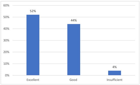 The proficiency in knowledge and skills necessary for diabetes care was also evaluated among parents following the educational process. An excellent level of knowledge was demonstrated by 52.00% of respondents, while 44.00% exhibited a good level of knowledge. The remaining 4.00% displayed an inadequate level of knowledge (Figure 1).