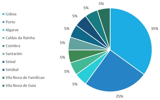 The sample was purposive and voluntary. The decision to use a purposive sample was driven by the interest in including self-identified LGBTQ individuals who have socialized as such. There were 2 interventions with 27 and 11 people each. From the first, 11 participants, and from the second, 5 participants volunteered for the interviews, totaling 16 interviews in the sample. The participants were from different regions in Portugal and between 19 and 45 years old. As it was a blind study, an irreversible term was assigned to each participant (Participant 1, Participant 2, …). Their distribution in classes can be seen in Table 1 and geographic distribution in Figure 1.