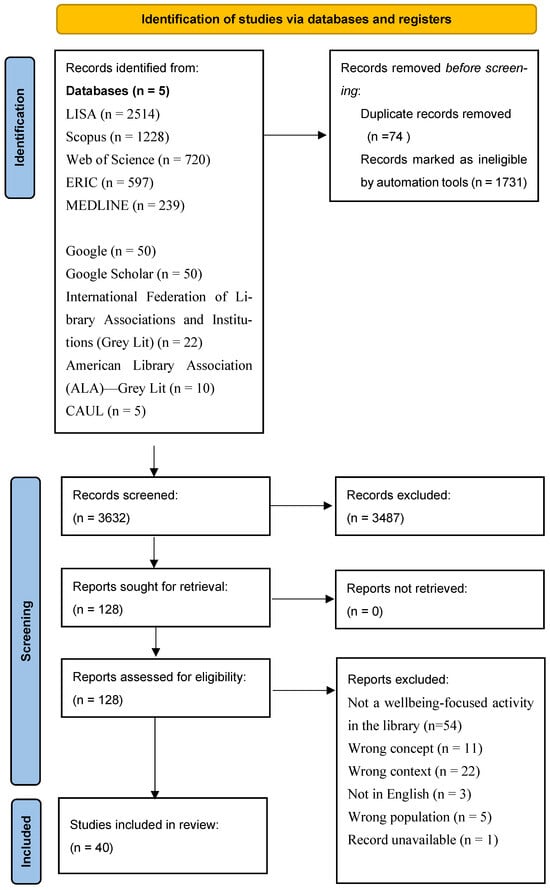 Suresh, S.; Lim, D.; Ekanayake, K.; Arora, A. Do Academic Libraries Contribute to Students’ and Communities’ Wellbeing?: A Scoping Review. Healthcare 2025, 13, 179. https://doi.org/10.3390/healthcare13020179