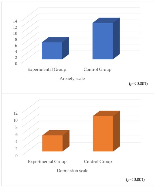 The comparison results for the HAD scale in the experimental and control groups are given in Table 5. According to Table 5, the differences between the groups for both sub-dimensions of the HAD scale are statistically significant (p < 0.005). The experimental group’s mean was significantly lower than the control group’s. Accordingly, the anxiety and depression levels of the patients in the experimental group were lower compared with the patients in the control group (Table 5) (Figure 3).
