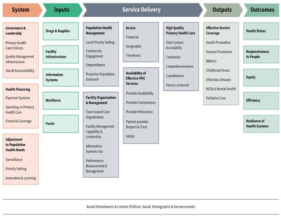 The Primary Healthcare Performance Initiative (PHCPI) Conceptual Framework (available at https://www.improvingphc.org/phcpi-conceptual-framework, accessed on 1 December 2024).