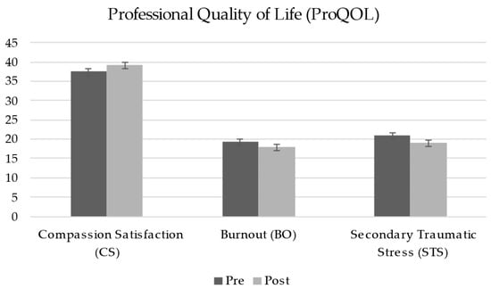 | Compassion satisfaction | Pre | 37.47 | 5.85 | 16.84 | <0.001 | 0.19 |