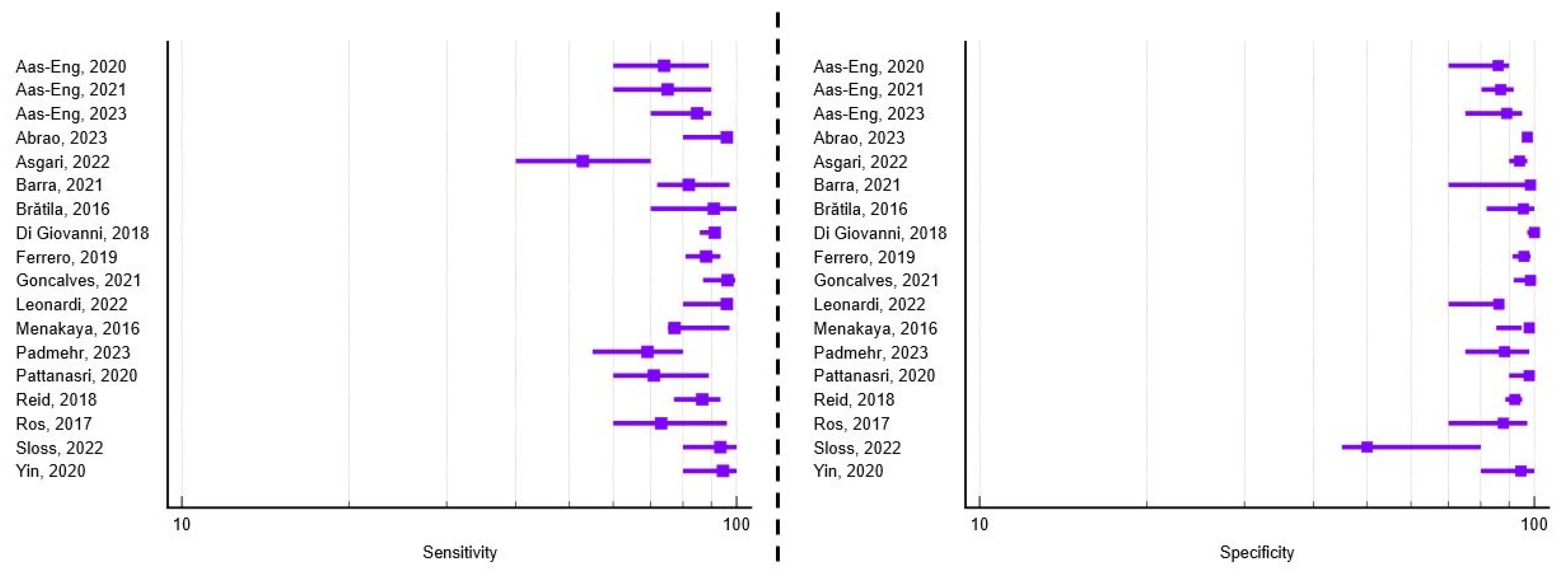 16. | Kamkarfar, 2022 [28] | Iran | Prospective Single-center | 80 | 34.4 | 5–9 | Lesion excision Biopsy | N/A | Se = 65 Sp = 93 | N/A |