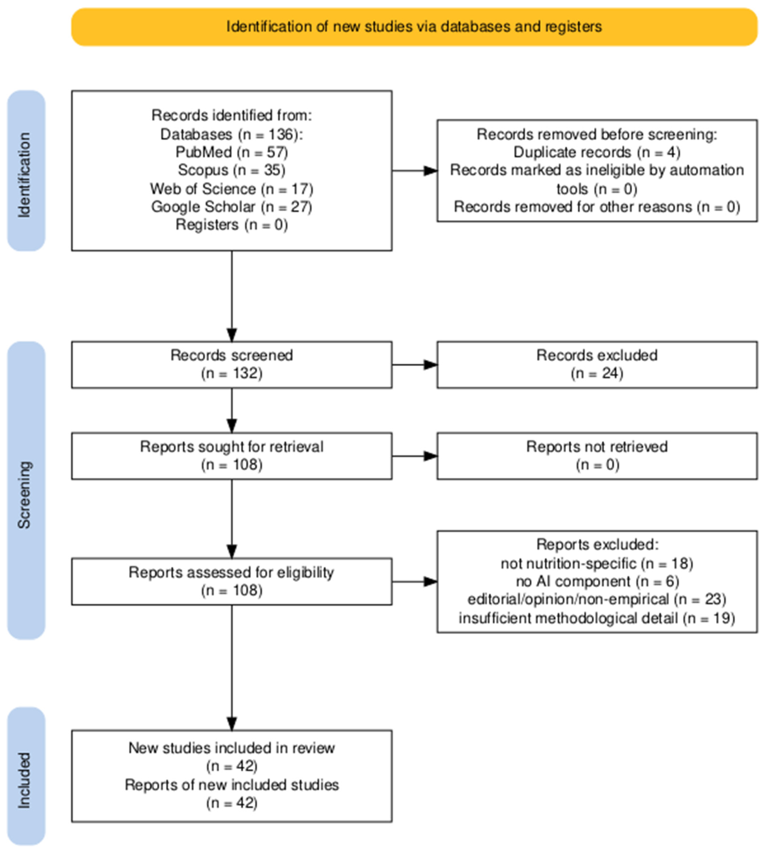 - Studies focused on the development, validation, or application of AI in nutrition science, dietetics, or public health nutrition;