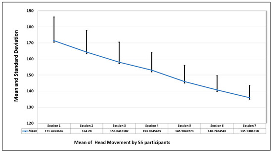 Also, from the graph of Figure 11, which depicts the average heart rate of each participant in seven sessions, the trend is that the heart rate improves with the increase in exposure to the spiders.