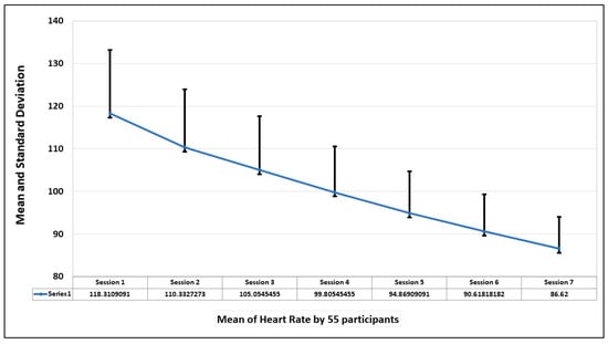 Mean and standard deviation of heart rate of all the participants in seven sessions.