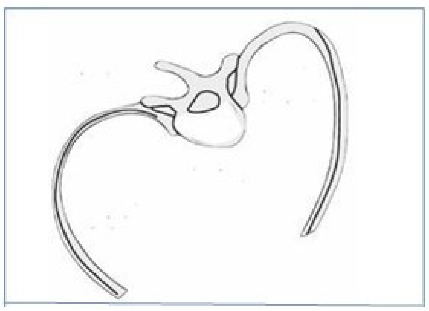 The clinical manifestations of AIS are variable. Mild curves are sometimes detected incidentally on examination after noticing certain signs such as asymmetry in the height of the shoulders, hips, or a truncal prominence. In contrast, more severe curves may be associated with low back pain, aesthetic deformities, and psychosocial anxiety. Therefore, an early diagnostic-therapeutic approach is important to avoid further progression of skeletal deformity and, consequently, further respiratory and cardiovascular complications [1,10]. In this sense, the vertebral rotation leads to deformities in the rib cage (Figure 3) and the appearance of dyspnea symptoms. In addition, this skeletal deformity and thoracic rigidity may cause a restrictive respiratory disorder with a reduction in forced vital capacity (FVC) and total lung volume (TPLV) in Spirometry. Other factors include a greater Cobb angle, an apical vertebral rotation, and a rib hump affecting lung expansion [11,12].