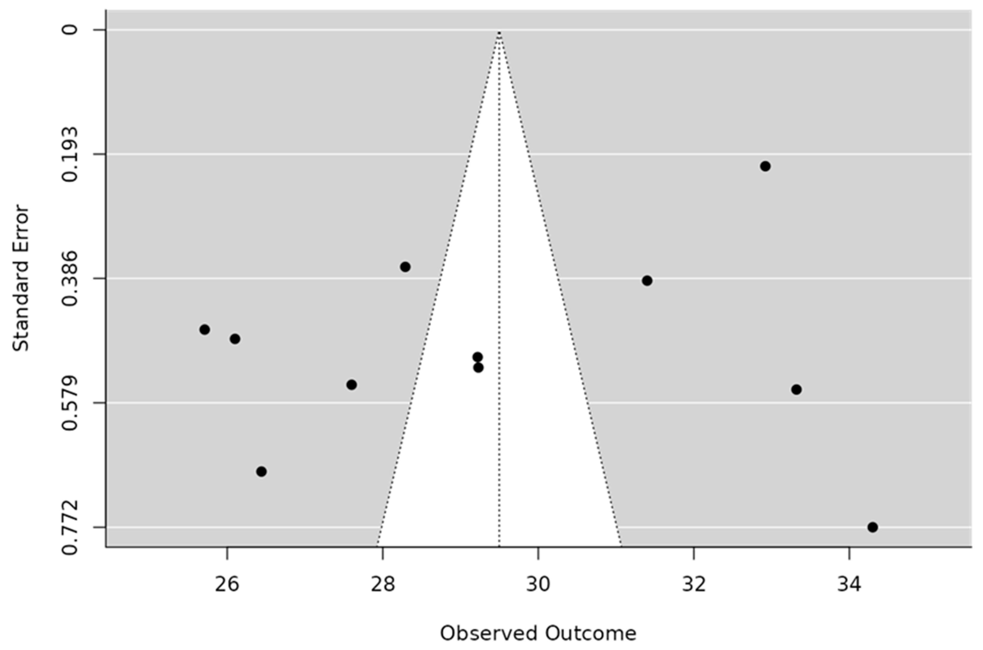 | Kendall’s τ | −0.018 (p = 0.94) | – | Consistent with Egger |