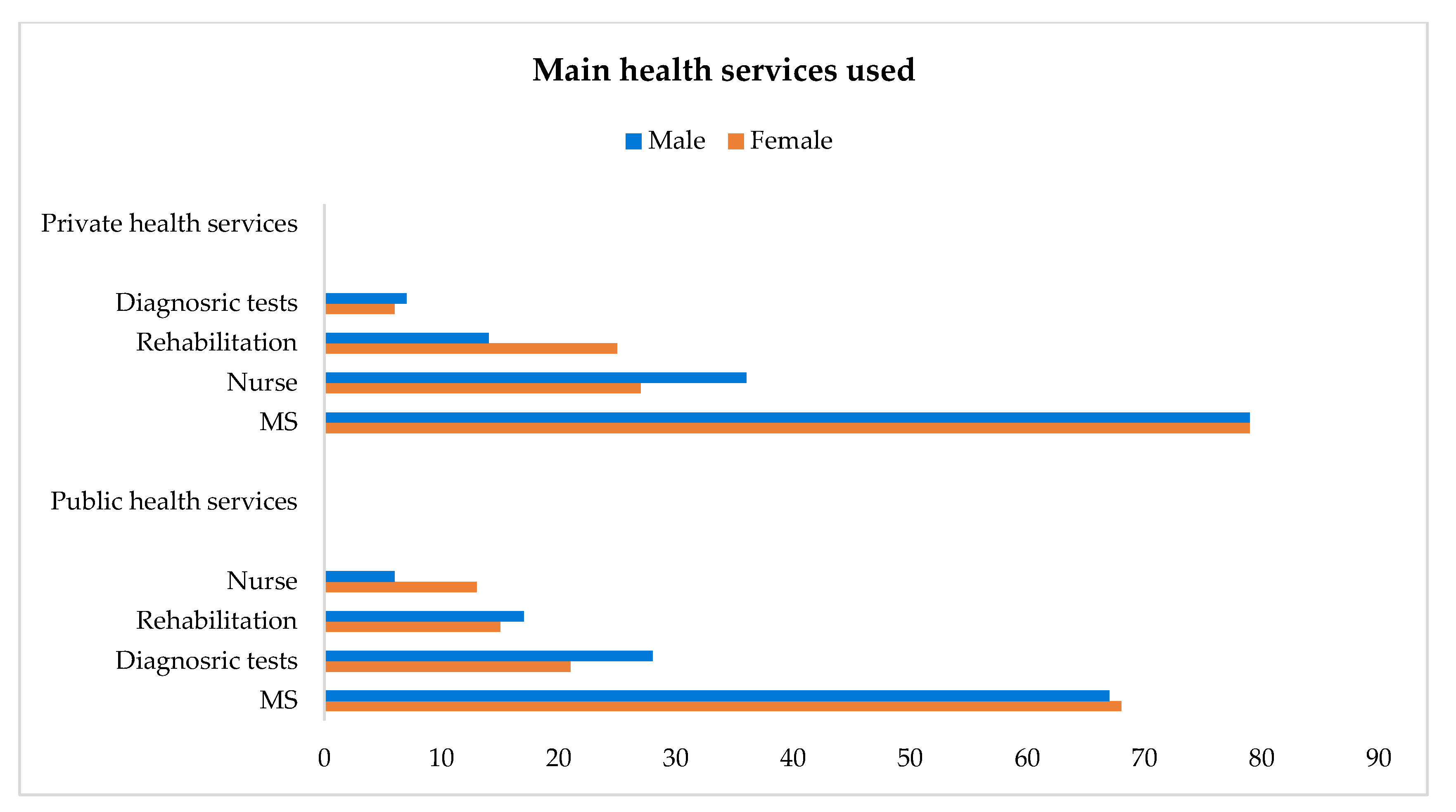 | Private health services | Medical specialist (MS); diagnostic tests 2; rehabilitation; nurse 3 Gender: female, male | |
