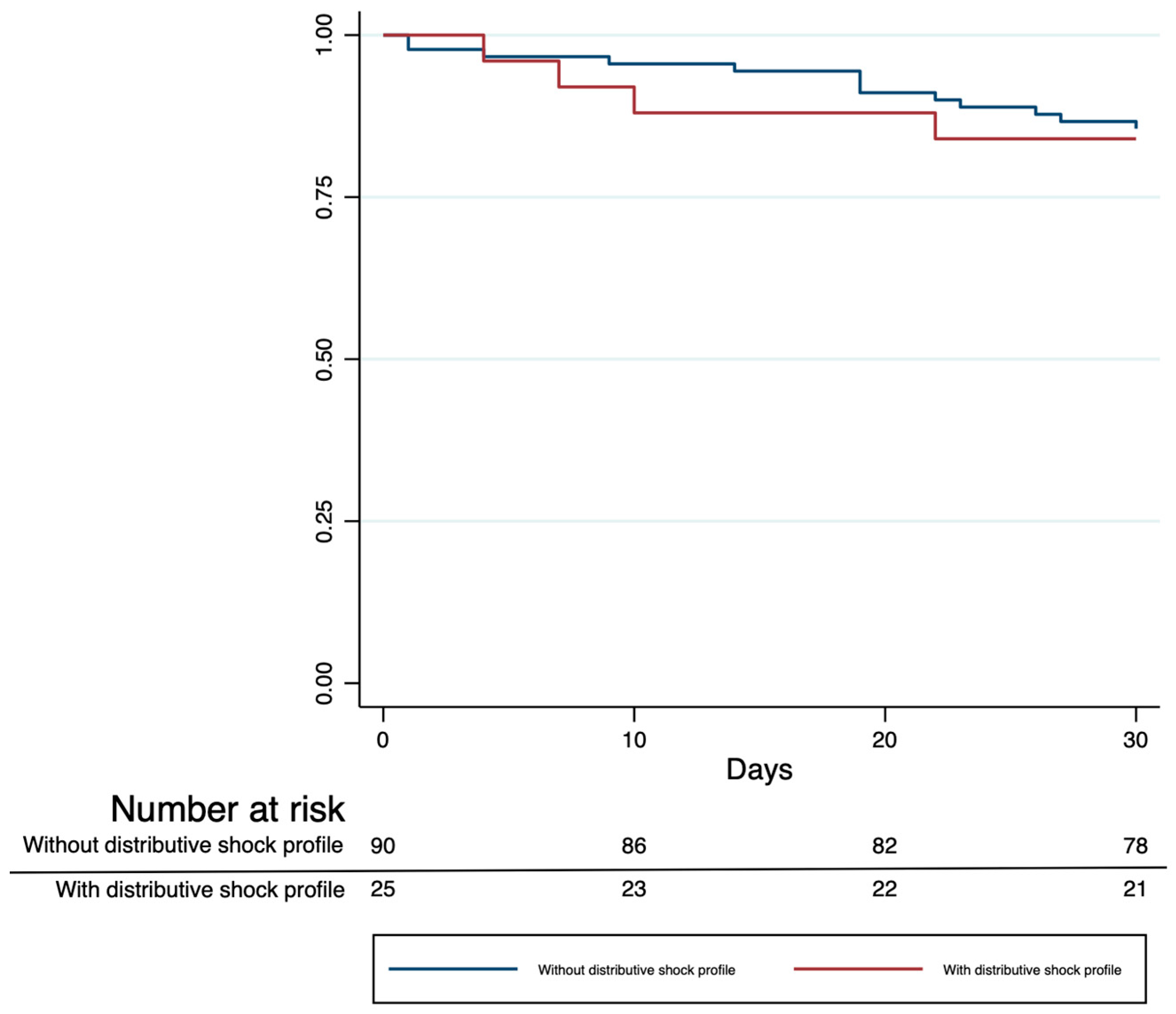Explore the short-term prognostic implications of identifying a distributive-shock profile at presentation.