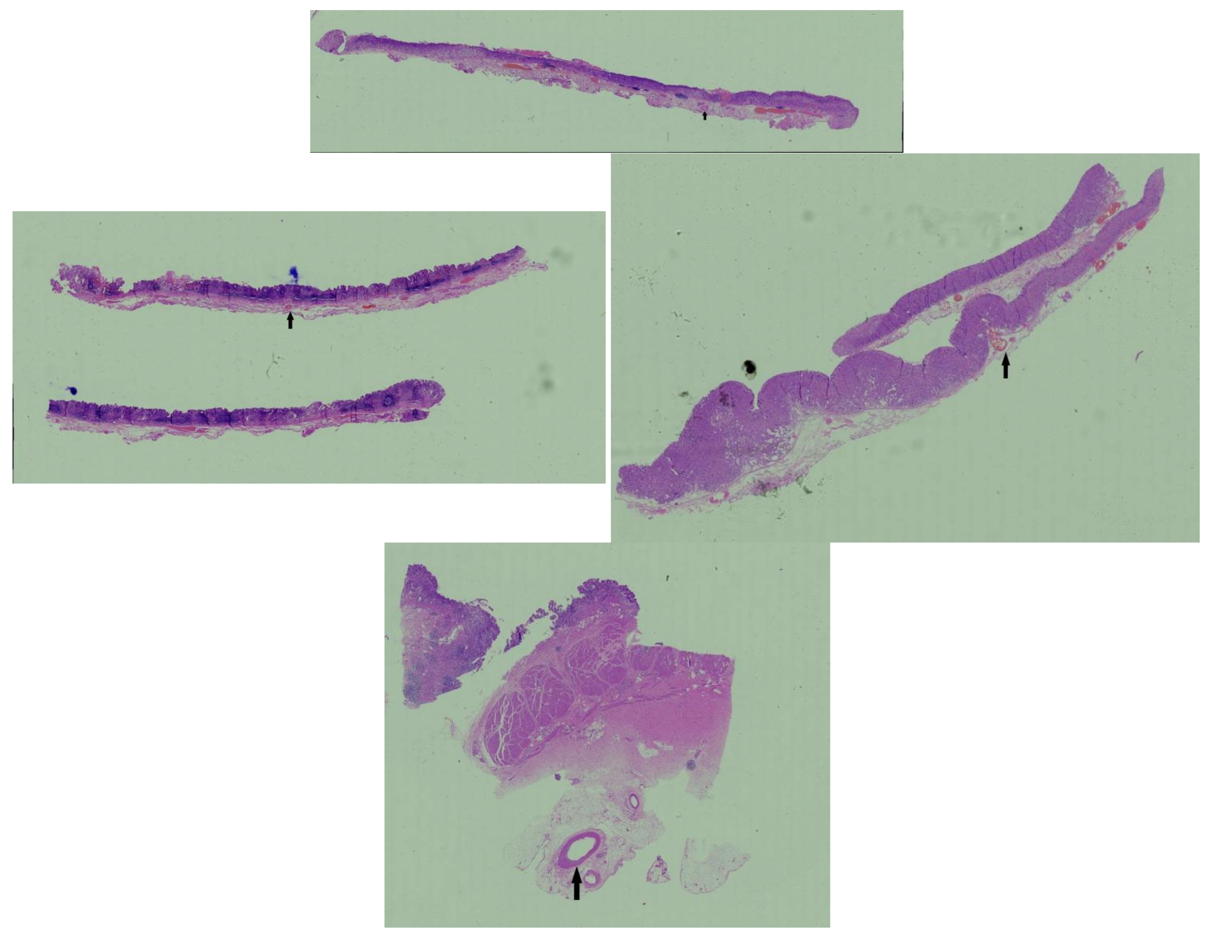 - Tsuneki, M.; Kanavati, F. Weakly Supervised Learning for Poorly Differentiated Adenocarcinoma Classification in GastricEndoscopic Submucosal Dissection Whole Slide Images. Technol. Cancer Res. Treat. 2022, 21, 15330338221142674. [Google Scholar] [CrossRef]