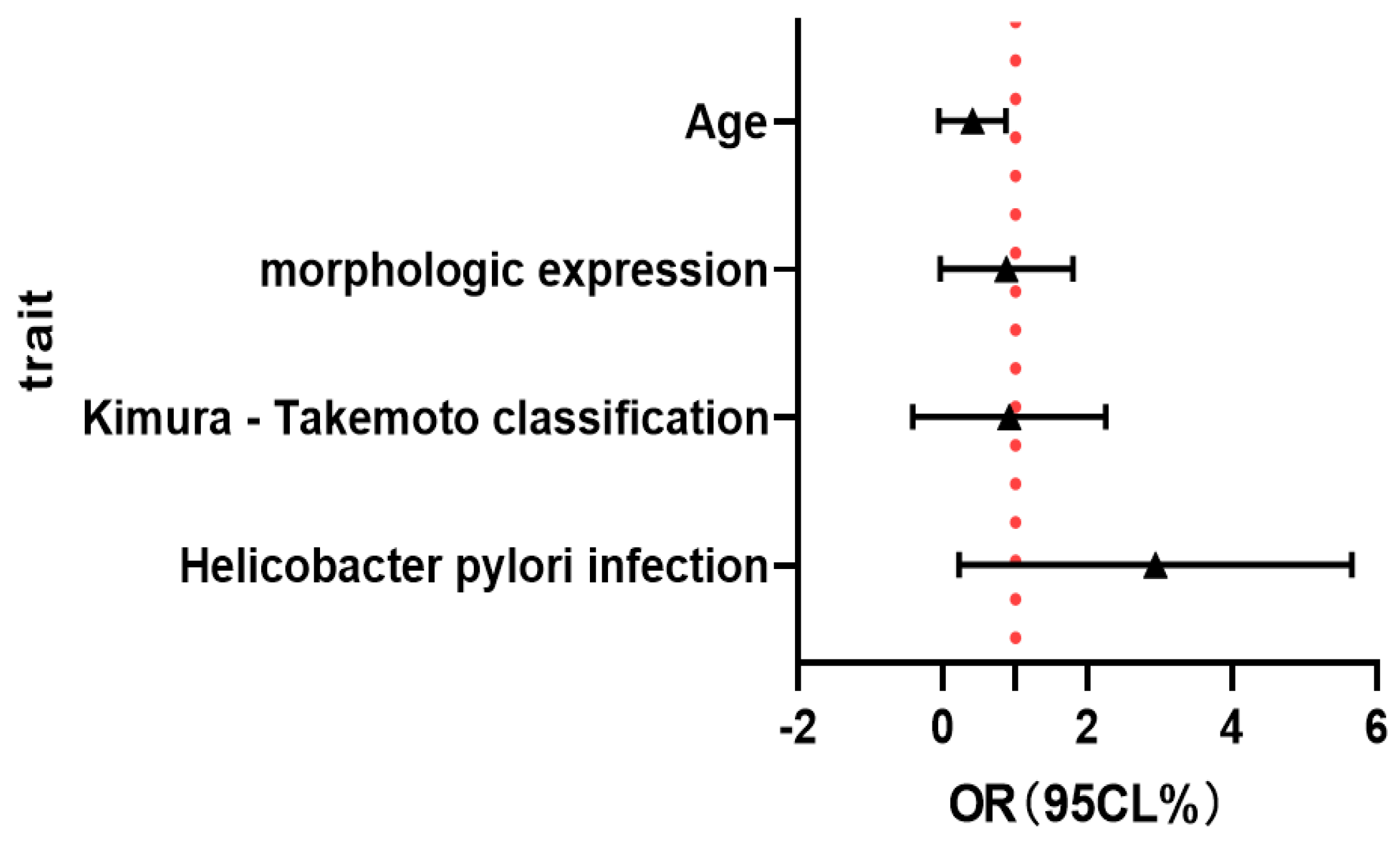 | Helicobacter pylori infection | 1.790 | 8.442 | 0.104 | 5.989 | 0.791–2.032 |