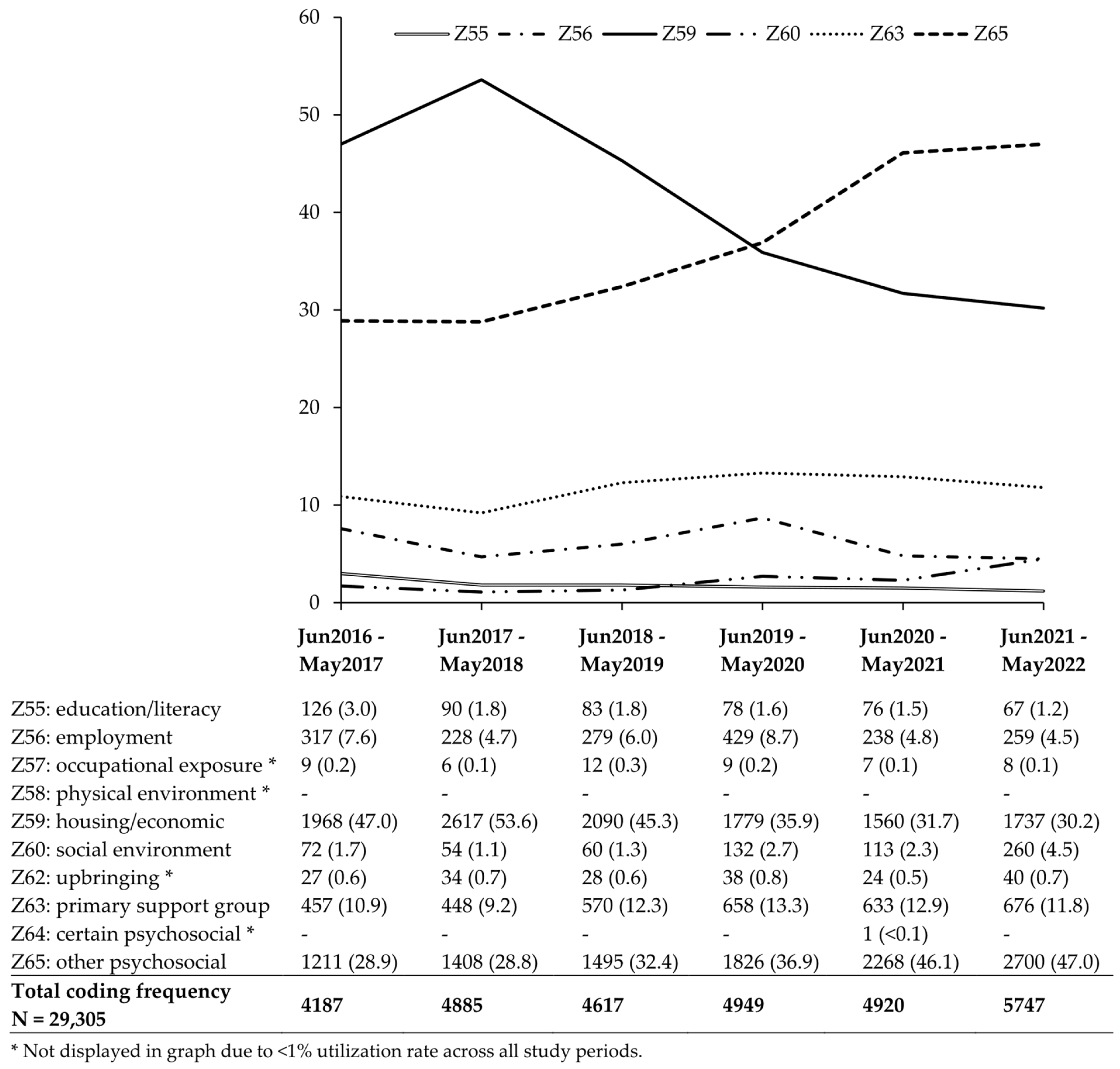 - Chang, J.E.; Smith, N.; Lindenfeld, Z.; Weeks, W.B. Hospital use of common Z-codes for Medicare fee-for-service beneficiaries, 2017–2021. Health Aff. Sch. 2024, 2, qxad086. [Google Scholar] [CrossRef] [PubMed]