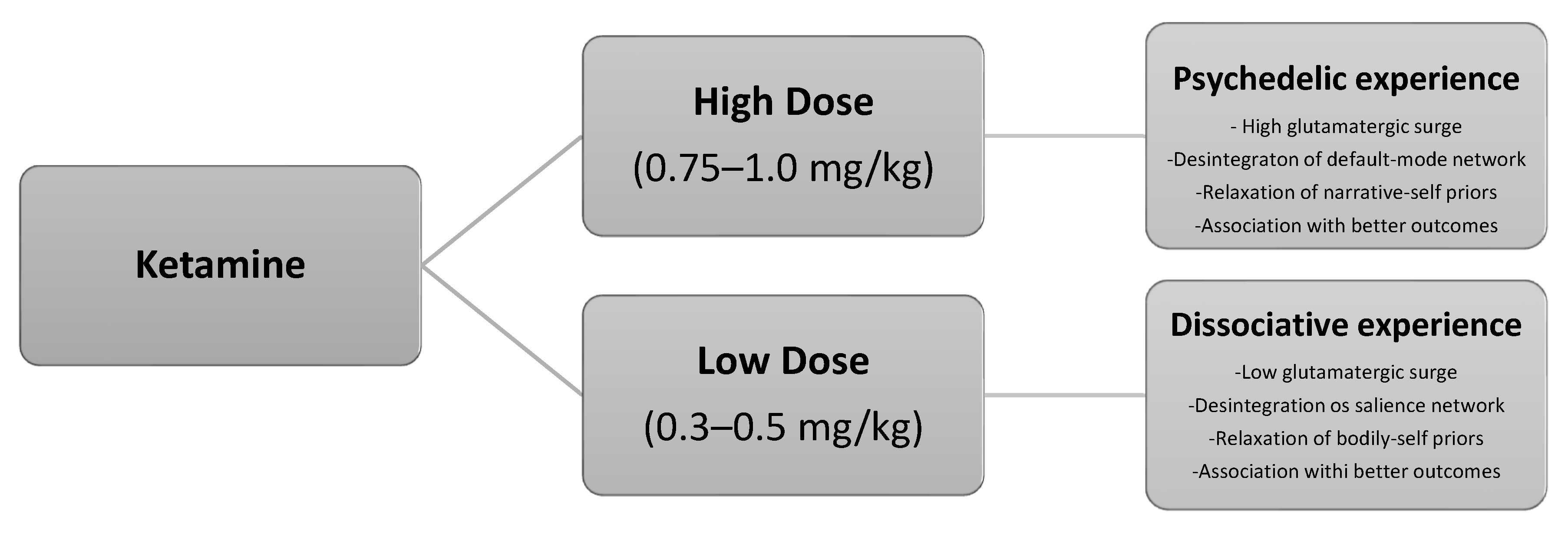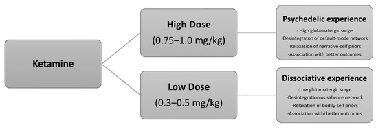 - Marguilho, M.; Figueiredo, I.; Castro-Rodrigues, P. A unified model of ketamine’s dissociative and psychedelic properties. J. Psychopharmacol. 2022, 37, 14–32. [Google Scholar] [CrossRef]
