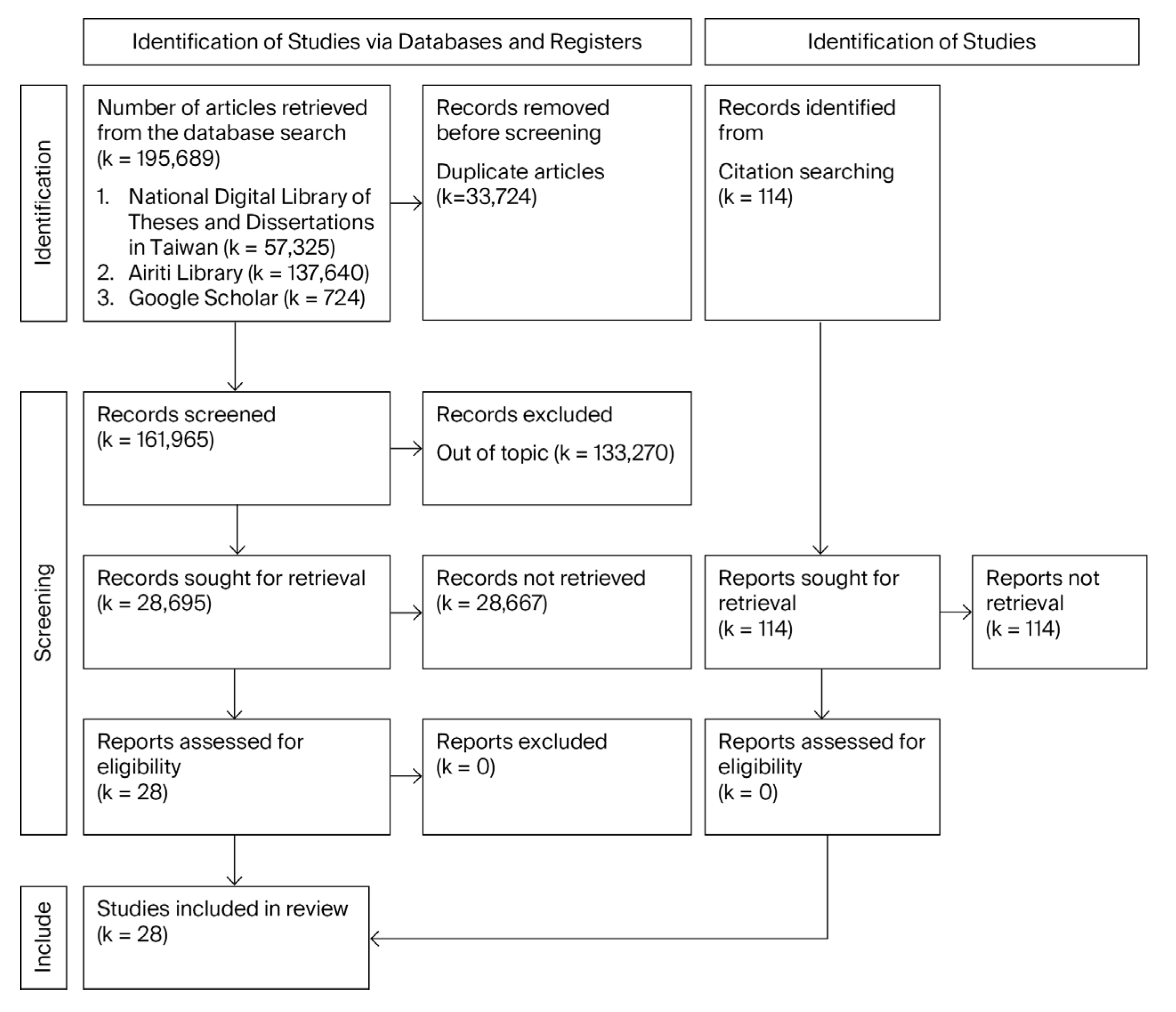 | Study | Chen, Y.L. (2024) [53] | Tsai, Y.T. (2024) [54] | Hsiao, W.Y. (2024) [55] | Liao, C.M. (2024) [56] | Wang, S.H. (2025) [57] | Ho, C.Z. (2014) [58] | Hu, Y.C. (2019) [59] |