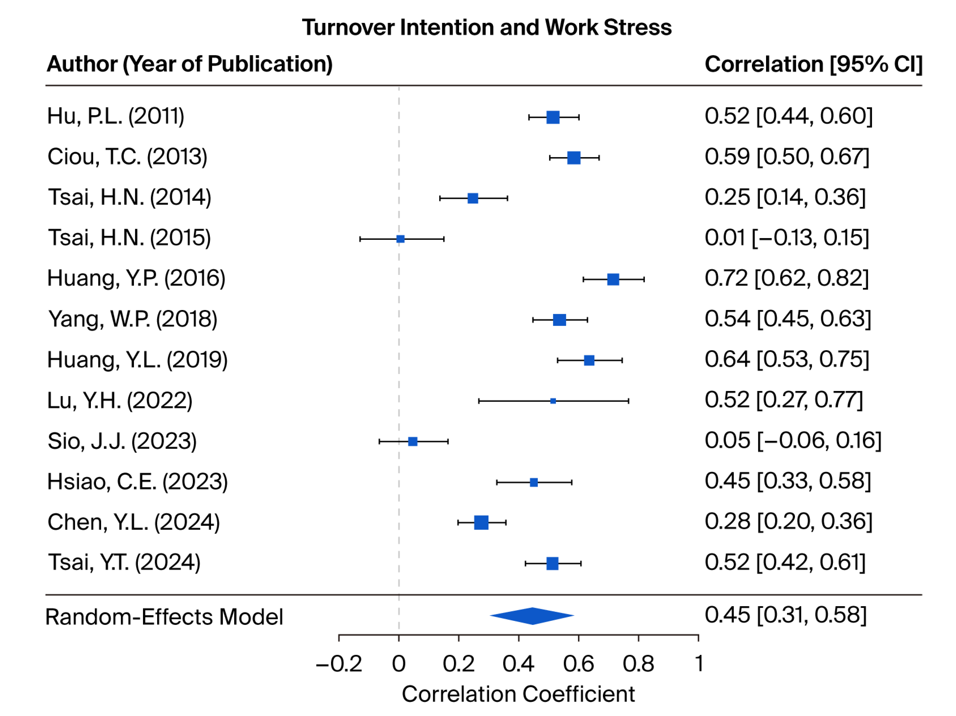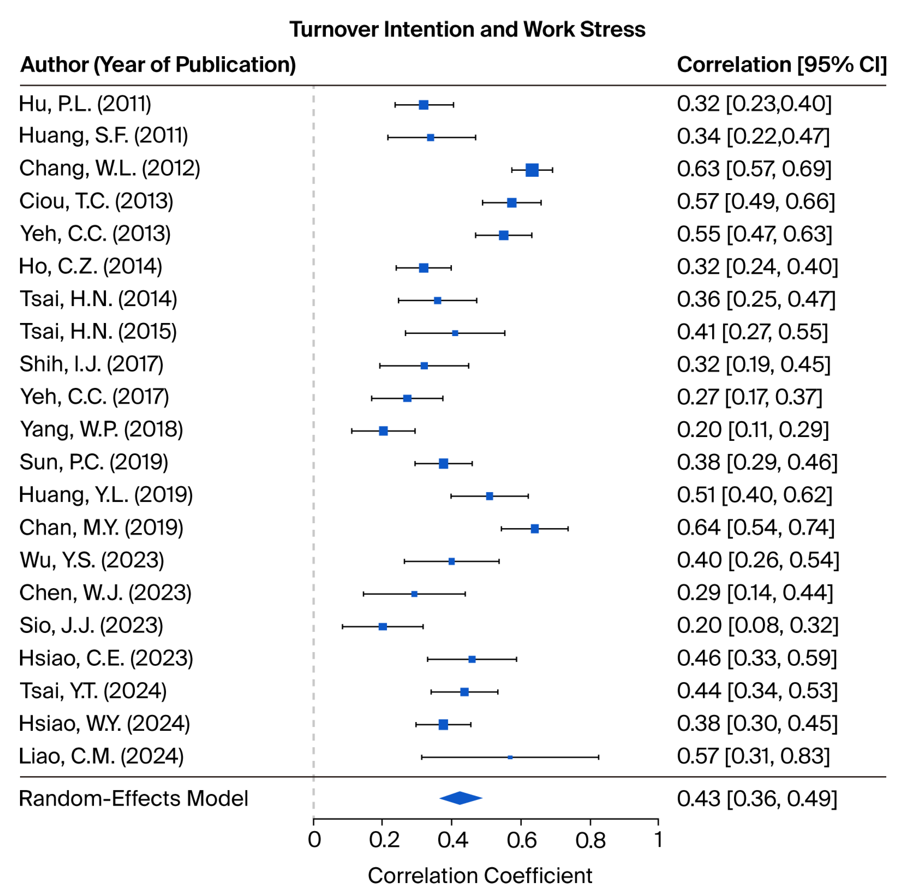 Lai, Y.-H.; Chang, M.-Y.; Wang, C.-C. Applying Meta-Analytic Structural Equation Modeling to Examine the Relationships Among Work Stress, Job Burnout, and Turnover Intention in Taiwanese Nurses. Healthcare 2025, 13, 2718. https://doi.org/10.3390/healthcare13212718