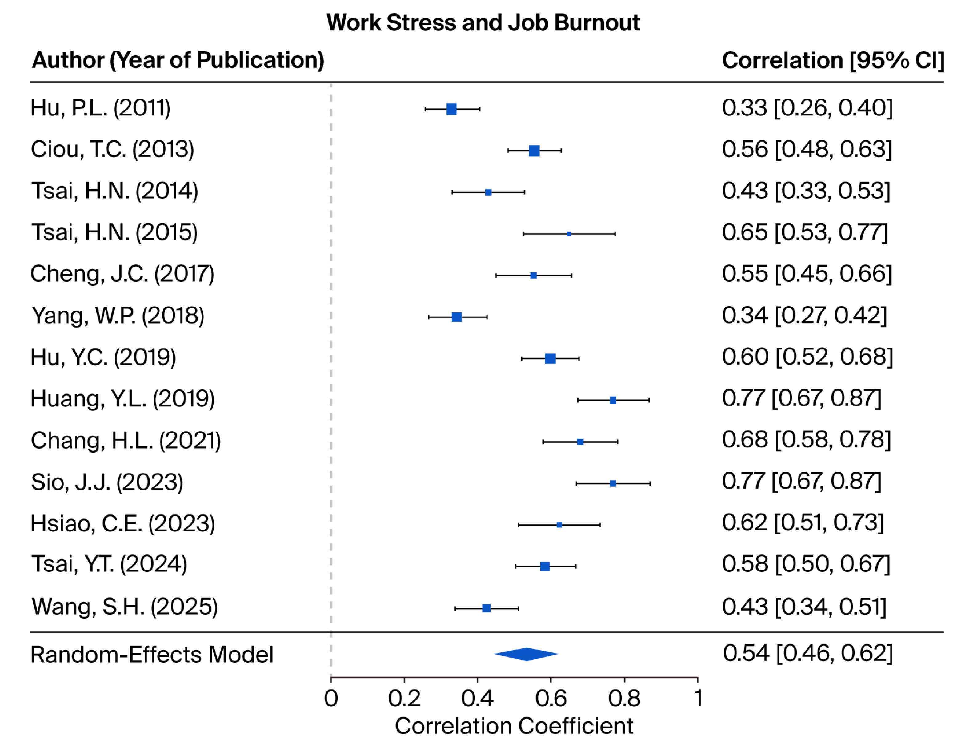 Chicago/Turabian StyleLai, Yi-Horng, Mei-Yun Chang, and Chung-Cheng Wang. 2025. "Applying Meta-Analytic Structural Equation Modeling to Examine the Relationships Among Work Stress, Job Burnout, and Turnover Intention in Taiwanese Nurses" Healthcare 13, no. 21: 2718. https://doi.org/10.3390/healthcare13212718