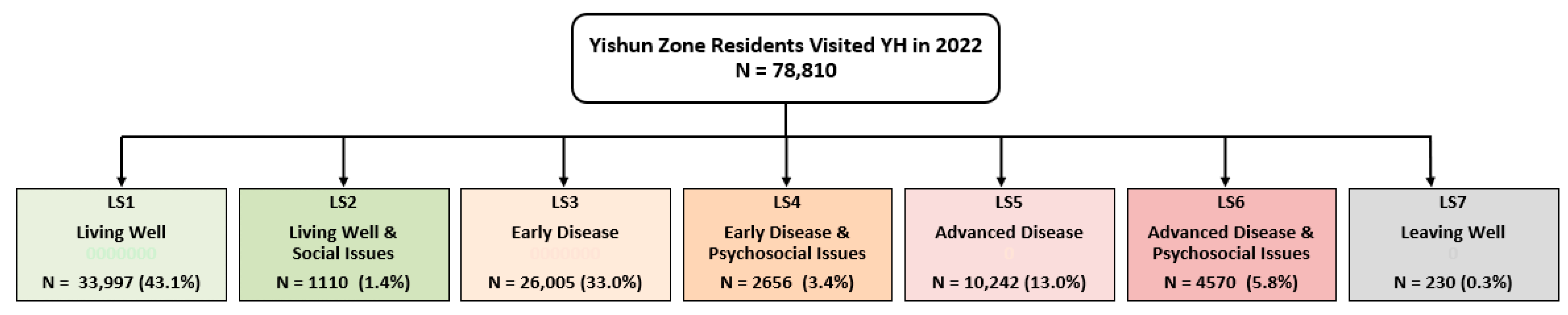 3. Chong, J.L.; Low, L.L.; Matchar, D.B.; Malhotra, R.; Lee, K.H.; Thumboo, J.; Chan, A.W.-M. Do healthcare needs-based population segments predict outcomes among the elderly? Findings from a prospective cohort study in an urbanised low-income community. BMC Geriatr. 2020, 20, 78. [Google Scholar] [CrossRef] [PubMed]