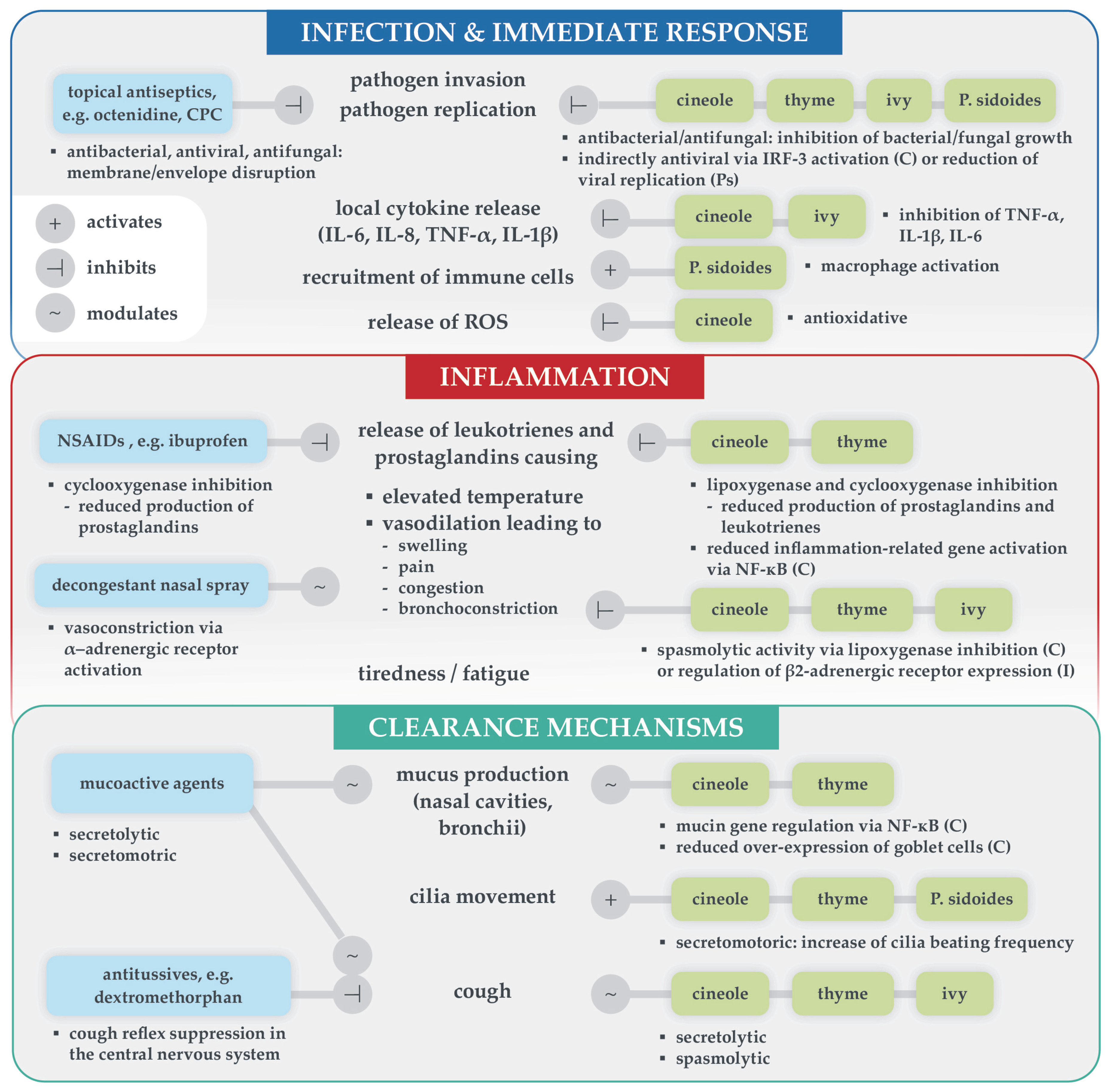 - Veldman, L.B.M.; Belt-Van Zoen, E.; Baars, E.W. Mechanistic Evidence of Andrographis paniculata (Burm. f.) Wall. Ex Nees, Pelargonium sidoides DC., Echinacea Species and a Combination of Hedera helix L., Primula veris L./Primula elatior L. and Thymus vulgaris L./Thymus zygis L. in the Treatment of Acute, Uncomplicated Respiratory Tract Infections: A Systematic Literature Review and Expert Interviews. Pharmaceuticals 2023, 16, 1206. [Google Scholar] [CrossRef] [PubMed]
